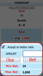 To place a bet on any matches, you must first log-in using your account ID and password. If you do not yet have an account with us, please click on the " Register " tab to open your account.