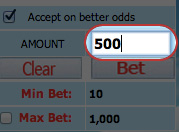 A box will appear at the left of your screen now, showing details of your selection, as well as a box. Enter your stakes in this box.