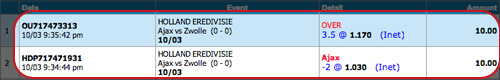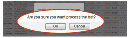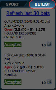 If you click " OK " , your bet's details will be transmitted to us. You can check the Status of your bet by clicking on the " Bet List " button at the left of your screen.